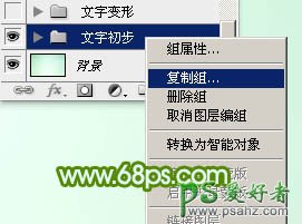 18、在组缩略图上右键选择“复制组”,再命名为“文字-变形”,把原组隐藏。