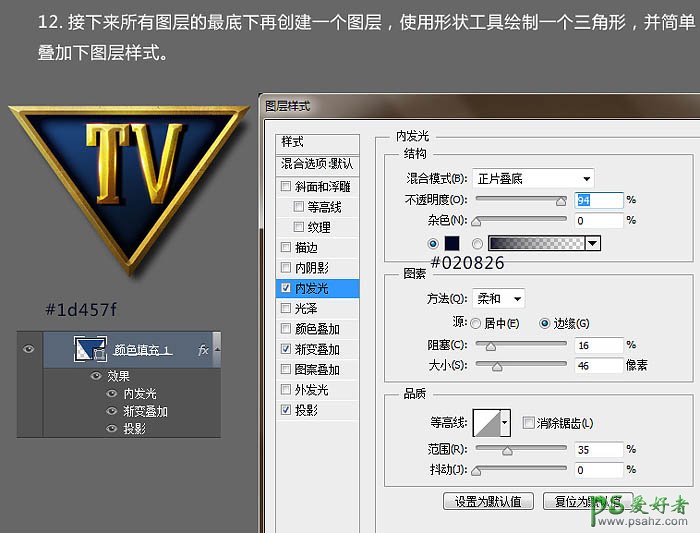 12、接下来所以图层的最底下再创建一个图层,使用形状工具绘制一个三角形,并简单叠加下图层样式。
