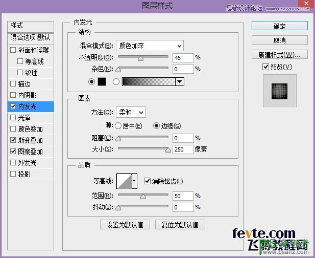 "图案叠加"中所用的图案是Photoshop图案库中"艺术表面"的"纱布"图案。
