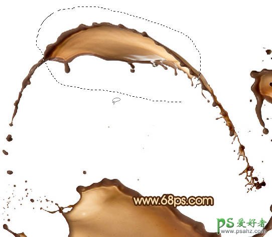 2、现在我们来制作喷溅效果。打开喷溅素材,先用套索工具选出第一个喷溅素材的局部,如图2,然后按Ctrl + C 复制。