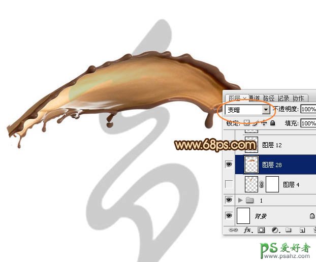 5、把混合模式改为“变暗”,这样就可以看到底部的文字轮廓,也利于之后的文字衔接。