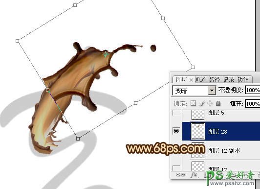 15、按Ctrl + T 变形,调整好位置、角度、大小等,如下图,然后回车确定,效果如图18。