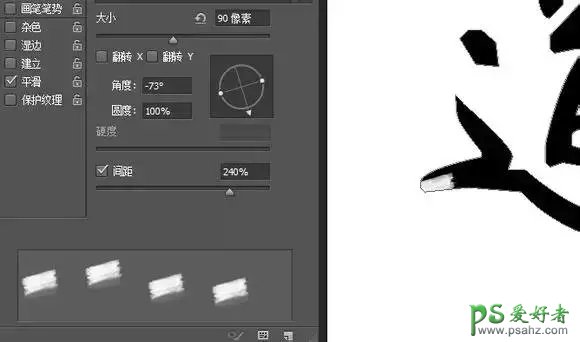 画的时候,可以把间距提到可以看到单独的笔刷,然后,不断的来旋转角度来契合你要擦拭的字体边缘。