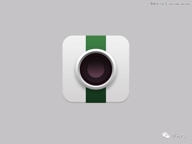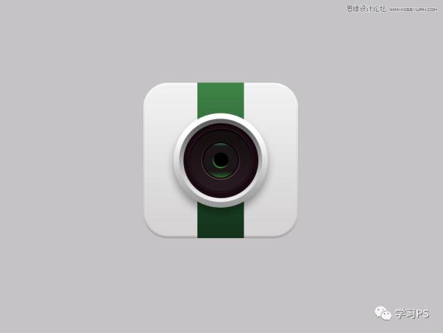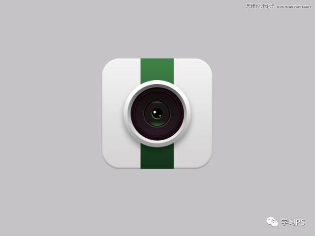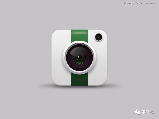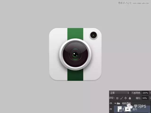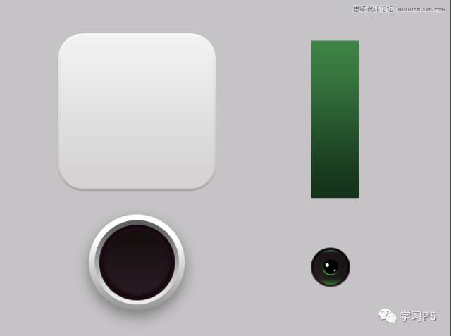 老规矩,先来分析一下。这里我们主要分为四个部分:底座、绿条、大镜头、小镜头,其他问题都不大,主要是镜头部分、需要用到多个图层及图层样式,来表现图标的立体感,骚年分析完已经成功一半了,离成功还会远么,噢耶!!!