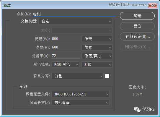 首先新建画布800*600画布,命名为相机,填充背景颜色#c5c3c6