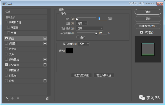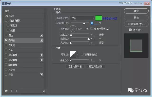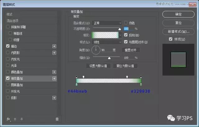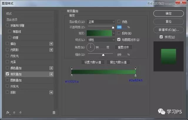 接下来我们新建85*280的矩形,命名为绿条、添加图层样式。