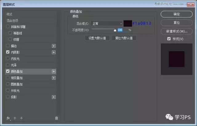 继续使用椭圆工具、绘制一个150*150的圆,并为它添加图层样式。