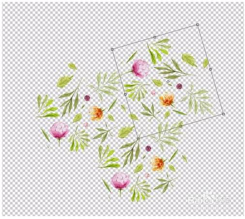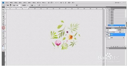 2、我们来处理一下图案,将多余的、半截的用橡皮擦工具擦掉,复制出多个,改下大小啊、方向啊、旋转啊、跳跃啊什么的~
