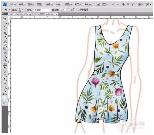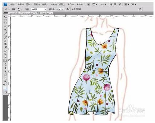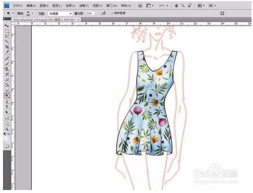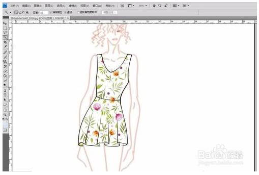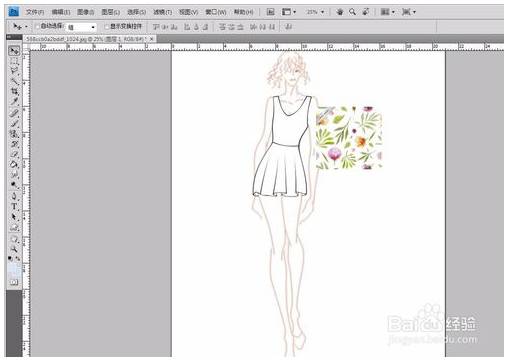 1、将时装画和图案一起放入PS,(图案在网上找的,侵删)。其实也可以用自己画的线稿。