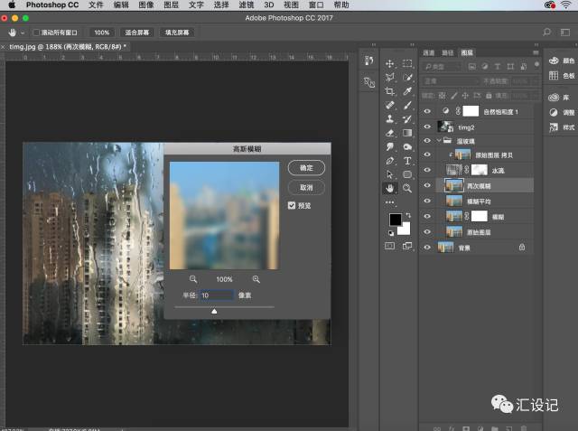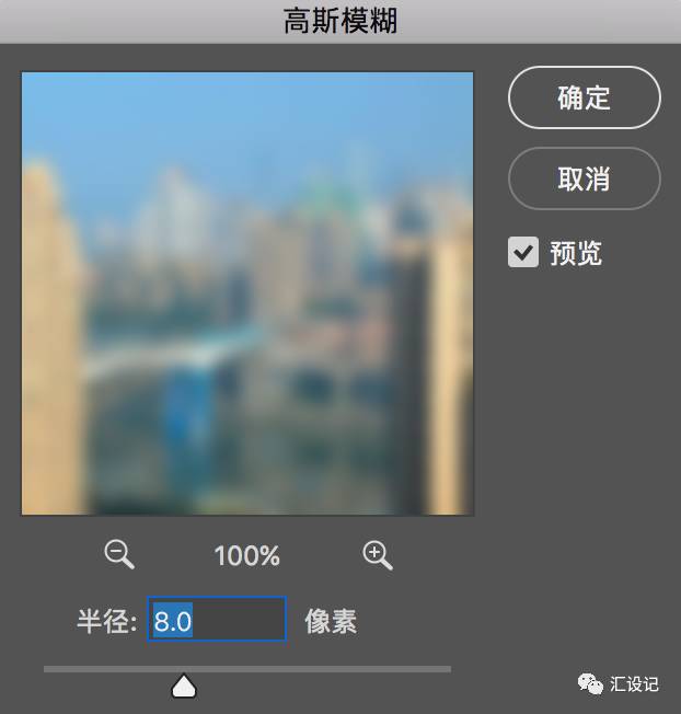 然后去过滤镜>模糊>高斯模糊,输入半径:8像素 ,然后单击确定 。
