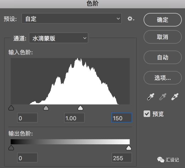 13.接下来,按Ctrl+L调出色阶调整窗口。 将突出显示级别更改为150 ,然后单击确定 。