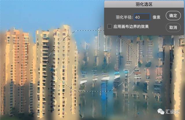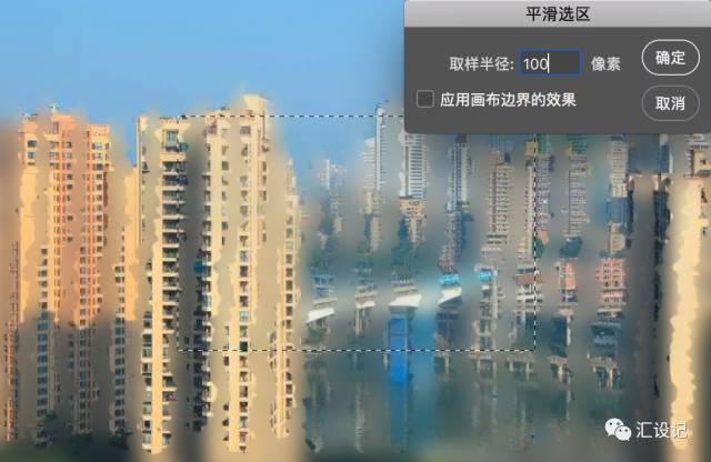 15.接下来,转到选择>修改>平滑,并输入半径:100像素 ,然后单击确定 。然后转到选择>修改>羽化,并输入羽化半径:40像素 ,然后单击确定 。