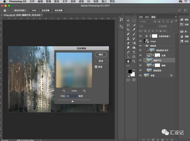 21.对图像进一步调整,选择原始图层,然后按Ctrl+J复制图层。并将重复的图层重命名为“ 模糊平均” 。转到滤镜>模糊>高斯模糊,输入半径:25像素 ,然后单击确定 。
