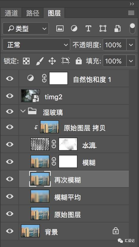 图层重命名为原始图层。 确保只选择了原始图层,然后按Ctrl+G将其添加到新组。并将组重命名为“ 湿玻璃” 。现在,你的“图层”面板应具有以下内容。
