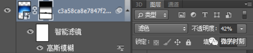 选择滤色模式,添加蒙版渐变,并调整透明度.。
