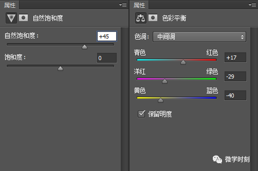 然后给整个背景增加点自然饱和度和色彩平衡。