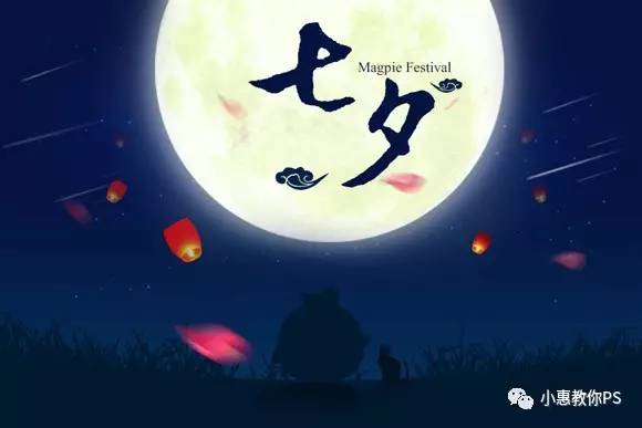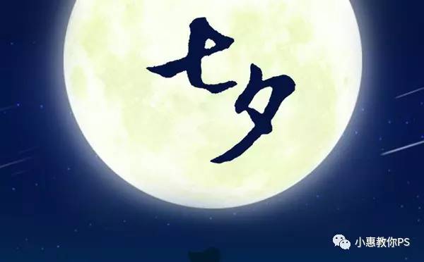 10、 将“七夕”两个字的素材导入画布;用 “魔棒工具”(快捷键:W)选择扣出,并将其转换为智能对象;改变大小,调出两个图层的图层样式,选择 “颜色叠加”色值为“# 051341”。