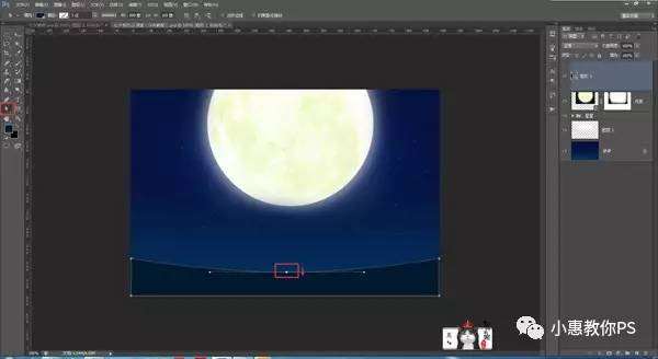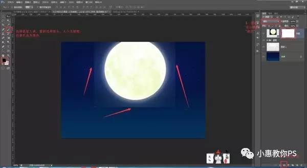6、 为了去掉不必要的半透明边框,为“月亮”图层添加图层蒙版,选择“画笔工具”,将前景色设置成“黑色”。此时需注意:重新选择画笔的笔头,重新调整画笔的大小及硬度!