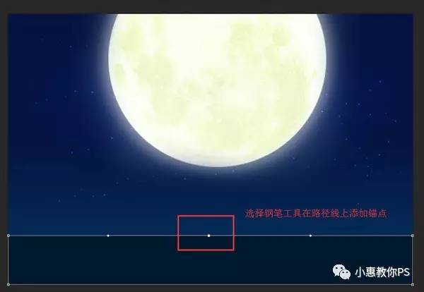 b) 用“小黑工具”(快捷键:A)选中矩形的路径,此时出现矩形的路径线,再选择“钢笔工具”(快捷键:P),在图中位置(大约水平方向的二分之一出)添加一个锚点;