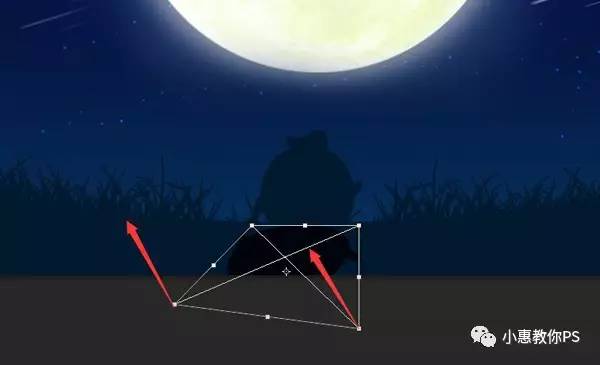 f) 让画面的两边都有草丛,两边的草丛多一些,中间的少一些(符合广角拍摄的客观规律,最后要加入本次的主角——云宝)。复制一个,ctrl+T改变一下大小
