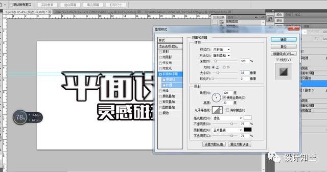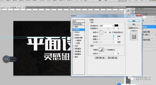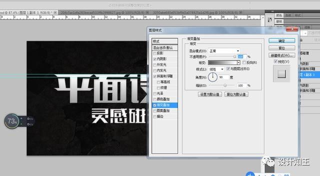 第二步,这个时候我们需要在变形的文字上做出一些效果,打开图层样式,点开斜面浮雕、渐变叠加的设置、内阴影的设置,具体的参数设置可以看看下面。