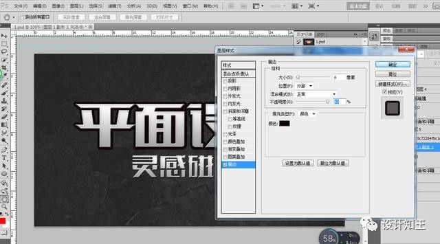 第三步,这个步骤我们主要做的就是要做文字外边的描边效果,在这里我们先将已经变形的图层复制一层,复制图层填充为0%,然后进行文字的描边,具体就是打开图层样式点击描边,数值可以设置到6,适当的调整一下其他数值和参数。