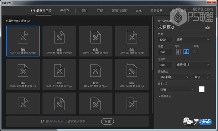 步骤1、我们新建或Ctrl+N,创建1000x 800像素大小,分辨率72像素/英寸,RGB颜色,8位,背景内容为白色的新文件 。大小也可以根据需要自己设定。