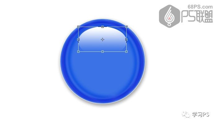 步骤11、Ctrl+T选中椭圆,变换椭圆的位子,将椭圆转到右上角,也就是我们选定其为高光部分的地方。