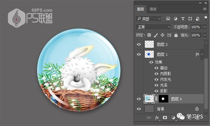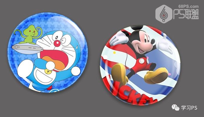 步骤17、现在我们就可以把自己喜欢的图片添加到微章中了,打开素材拉入微章图层中,注意素材图片必须放在图层1下面,按Ctrl键点击图层1得到圆形选区,然后点击图层下方的添加图层蒙版按钮给素材加上蒙版,使微章其他的部分不可见,得到如下效果。