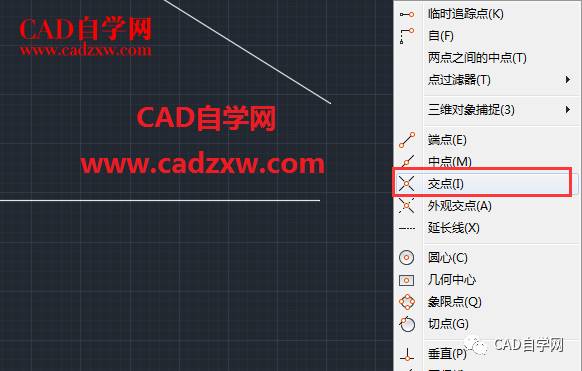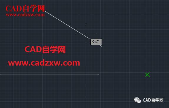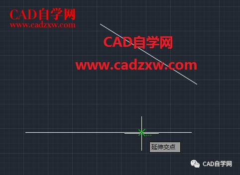 4,如下图所示完成两条线延长线交点的捕捉。