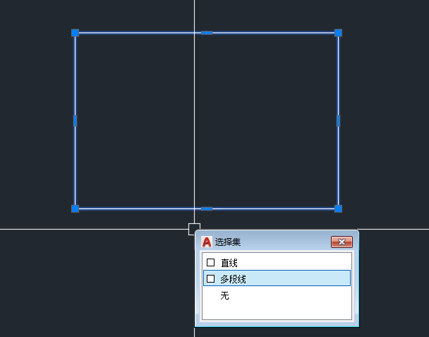 点击多段线以后他就会选择到矩形、这就是选择循环的作用、主要是方便我们选择重合对象、但是我们在绘图过程中经常出现这个对话框会干扰我们正常的绘图操作、所以一般我们是不使用这个功能的、那么如何关闭这个功能呢、一样非常简单