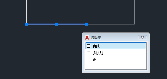 当我们开启选择循环功能以后就会出现上面的效果、使用鼠标选择重合的对象时就会弹出这个对话框、我们可以用鼠标来选择我们需要选择的对象、例如我们想要选择下面的矩形、就可以用鼠标选择多段线、然后我们看一下效果