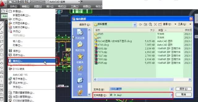 使用“X”(EXPLODE)分解命令将插入的块炸开;选中图纸,选择【文件】下的【输出】命令,选择输出块,进行命名保存 。 将输出的块导入软件中即可。