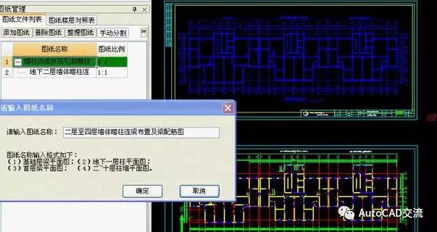 第一种方法:打开CAD——在菜单栏点“CAD识别”——图纸管理——手动分割——在绘图范围选择需要分割的图纸——右键——确定——在“请输入图纸名称”对话框点一下图名标注,图纸的名字就会自动生成——确定