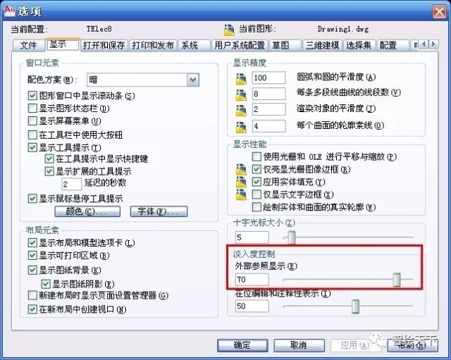 如果XDWGFADECTL的值小于0,相当于也是完全亮显。