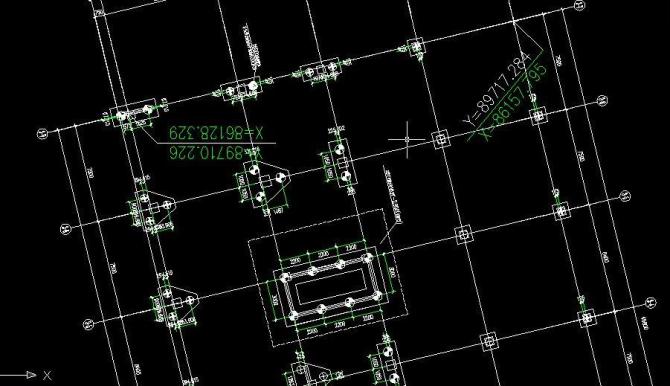 6、校核电子图纸的坐标系。方法:利用“十”字光标指定到有坐标值的点位上,查看该点位实际坐标值与图纸上标注的坐标值是否一致,如果相同则说明转换成功,如果不同则要重新进行转换。为了方便以后的操作,经过转换坐标系的图纸最好是另外存在一个文件夹内,不要替换原始的设计图纸。