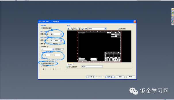 再点下一步,然后做一些调整,单位对应的选择一下(一般选毫米),图纸大小选一下(A几的,横还是竖,根据你的CAD图纸选),可以勾选在图纸中置中,点击完成。