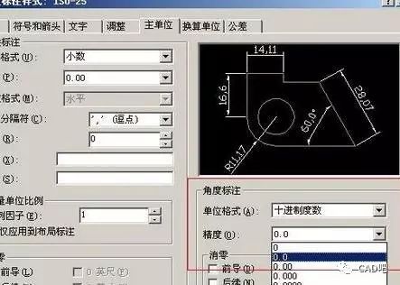 在标注的时候默认都是整数,不注意容易造成角度误差,调整如下图所示: