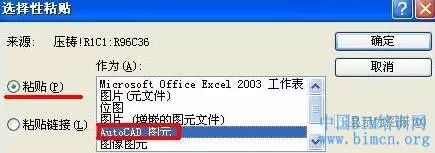 3、此时刚刚复制的内容已经出现在上面的,选择“粘贴”点击对话框中“AutoCAD 图元”,点击确定