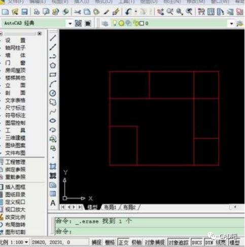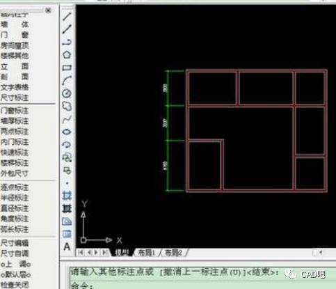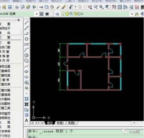 3.这样,墙体的中线就基本出来了,现在用TR(双空格)进行剪切或EX(双空格)进行延长,修改到你要的形状。例: