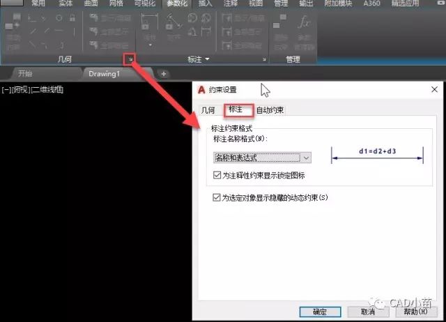 标注约束驱动对象的大小或角度,而标注由对象驱动