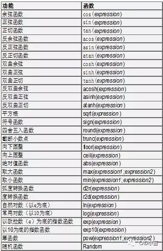 在CAD的参数表达式中,用户可以使用下表中的所有运算符号,以实现各种复杂的多项式运算。