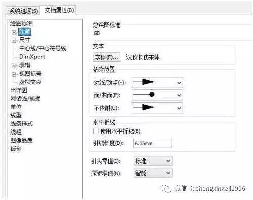 “注解”下面“尺寸”、 “中心线”、“表格”等的字体也需一一确认并记下字体名称。