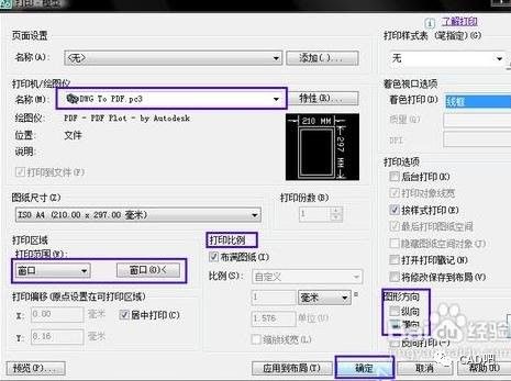 2弹出打印界面后,打印机我们选择内置的“DWG TO PDF.pc3” ,其他项根据你的需要设置,点击确定