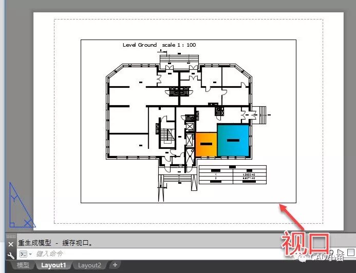 利用CAD自带模板文件新建的图纸都会自带两个布局,每个布局都会自带一个视口,如下图所示。