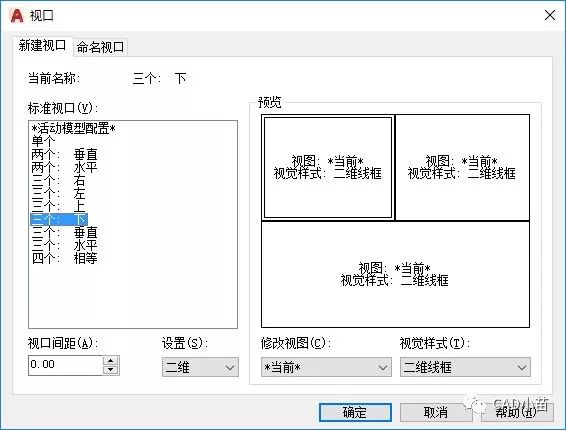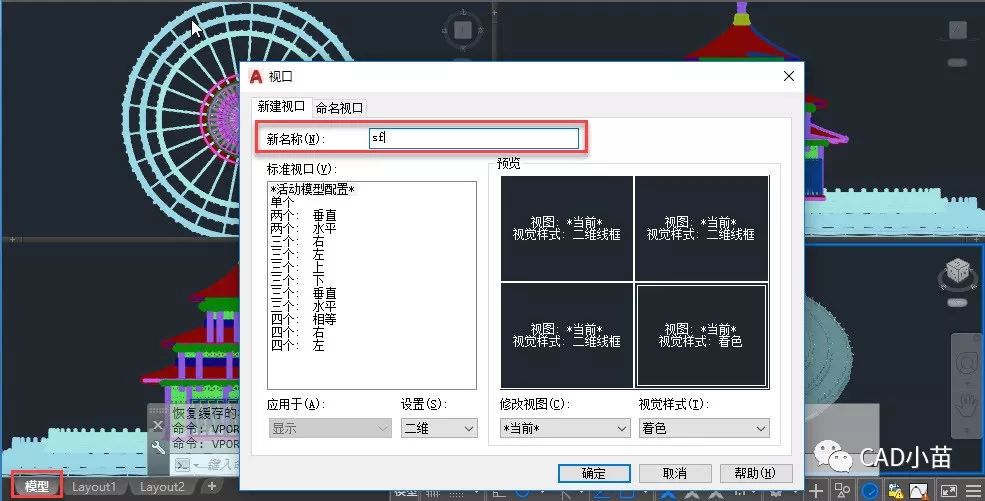 默认会一个*活动模型配置*,我们也可以给模型空间的视口配置取一个名字。