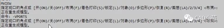 MVIEW是专门针对布局空间创建视口的命令,其实它跟VPORTS命令的作用是一样的,我们切换到布局空间后,输入-VPORTS命令,也就是使用VPORTS命令的命令行模式,可以看到命令的参数和选项跟MVIEW是完全一样的,如下图所示。