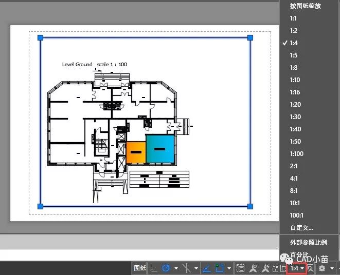 二是双击进入视口,输入Z回车,然后输入4XP或0.01XP,可以通过Z缩放的输入实际的比例值。0.01就等同于1:100。