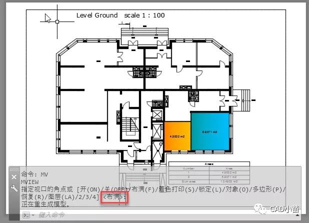执行MV命令后<>里的默认选项是布满,直接回车,就会自动根据当前的布局尺寸来生成一个视口,如下图所示。