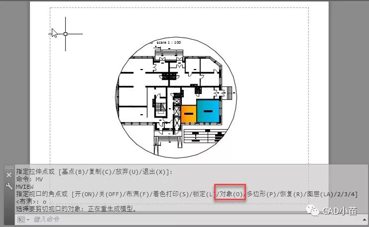 已创建的视口也可以用CLIP命令和封闭图形裁剪成我们需要的形状。如果习惯于用菜单的话,可以在菜单里选择:视图>视口>对象。